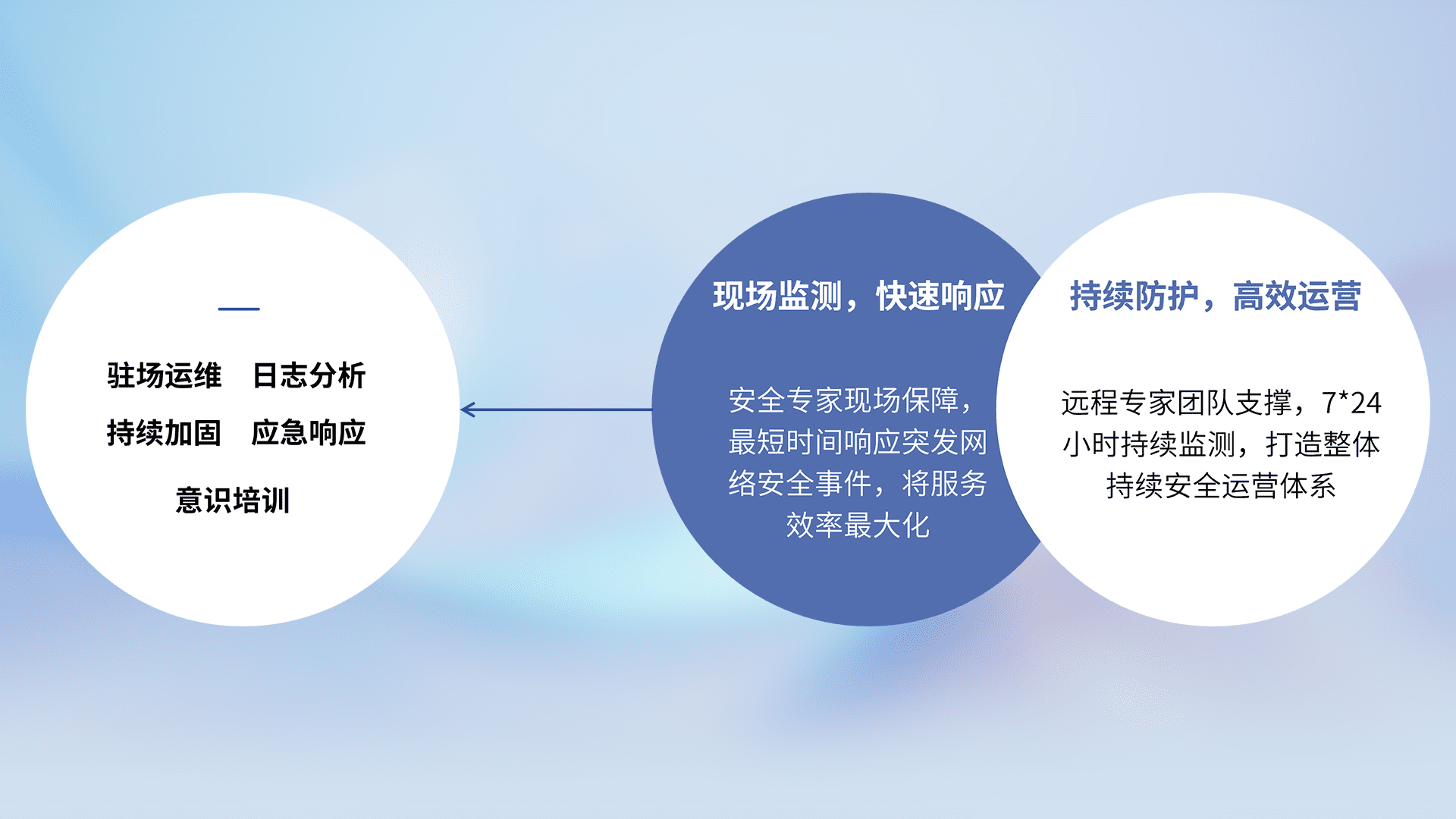 针对客户行业特性,,,,提供专属的一站式安全管理服务,,,,帮助客户全面感知网络空间威胁,,,通过安全专家的线上、、线下防护支持,,实现风险闭环,,将安全保障常态化,,,为客户打造常态化安全运维运营服务。。。